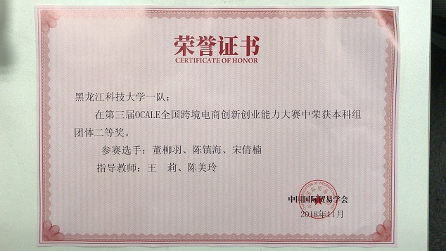 在学校教务处与beat365唯一官网党委的大力支持下,beat365官网beat365唯一官网王莉老师、陈美玲老师带领组建的beat365唯一官网一队(国贸17级3班董柳羽、陈镇海、宋倩楠)和beat365唯一官网二队(国贸17级1班白雪、戚晓玉和金融16级3班刘昭)历时将近一个月的奋战,分别获得创业赛本科组的全国二等奖、全国三等奖的优异成绩。