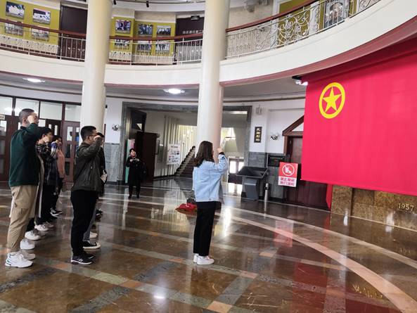 参观结束后,全体新老团员在青运史纪念馆宣誓厅,面对庄严肃穆的团旗,紧握右拳,进行了新团员入团宣誓老团员重温入团誓词活动。全体团员表示一定不忘跟党初心,牢记青春使命,奋发务实进取,勇于自我革新,为新时代中国特色社会主义事业贡献青春、智慧和力量!