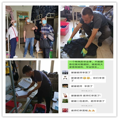 心里装着学生,再小的事也是大事。面对因疫情影响,毕业生不能到校的现实情况,辅导员化身为“信使”、“快递员”,每日到校为毕业生邮寄电脑,考研书籍,政审材料,团员组织关系介绍信等物品,帮助学生归还图书,退水卡、一卡通。