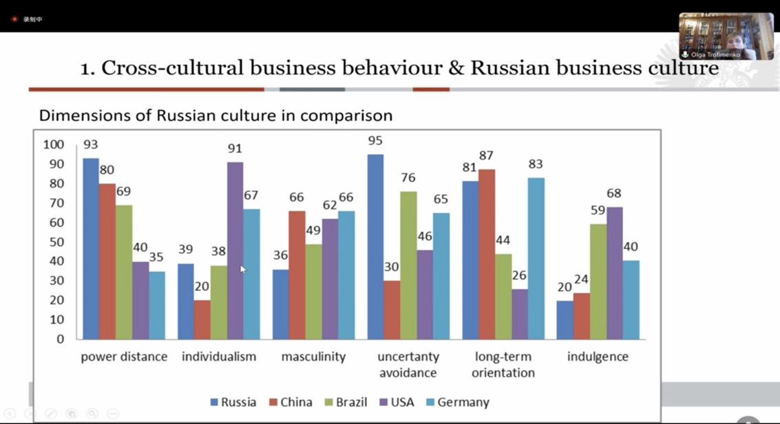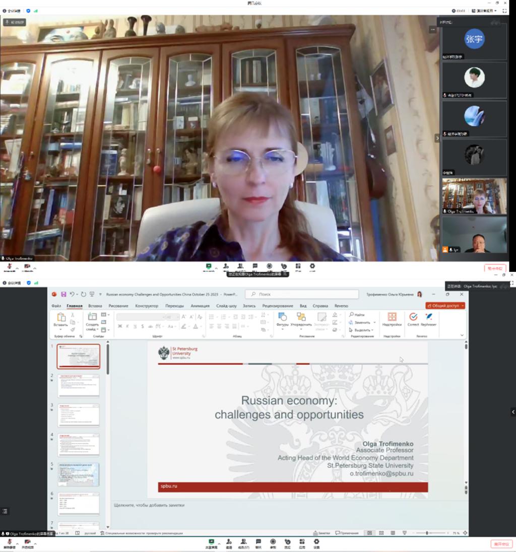 10月25日下午,beat365唯一官网与国际交流合作处采取线上形式联合举办学术讲座,俄罗斯圣彼得堡国立大学OIga Trofimenko副教授应邀参加此次中俄经济合作线上交流活动并作学术报告。相关学院教师、学生六十余人参会。此次报告会由beat365唯一官网经济系教师刘宇卓老师主持,beat365唯一官网副院长孙璐在开场致辞中强调此次论坛对促进黑龙江省与俄罗斯之间的经济合作与学术交流具有重要的意义。