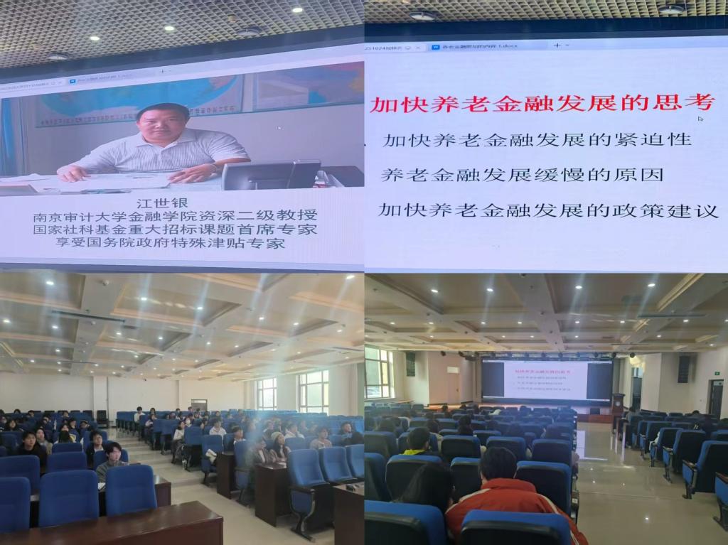 10月28日,beat365唯一官网学院邀请南京审计大学二级教授、博士生导师江世银教授作了题为《加快养老金融发展的思考》的学术报告。本次报告会采用线上线下同步的方式进行,相关专业教师、研究生、本科生200余人参加此次报告会,报告会由beat365唯一官网副院长孙璐主持。