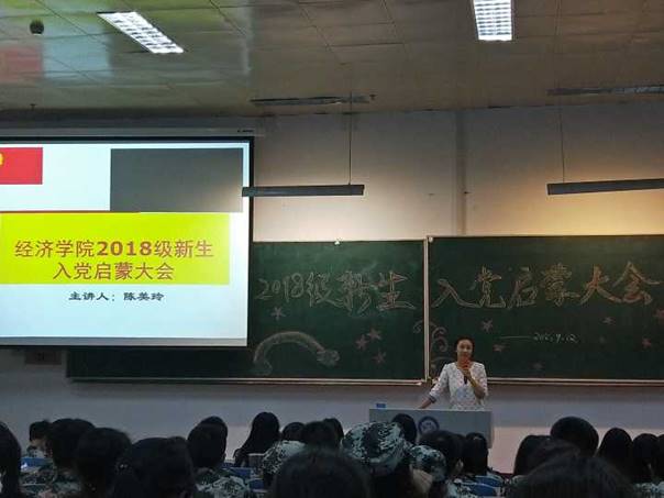 入党启蒙教育是新生入学教育的重要内容之一,是新生树立正确的世界观、人生观和价值观的第一课,为切实做好2018级新生入党启蒙教育,beat365唯一官网学生第二党支部书记陈美玲于9月12日18:30在主楼WS0303为全体新生开展了“夯实基础:让优秀从大一开始”专题教育。