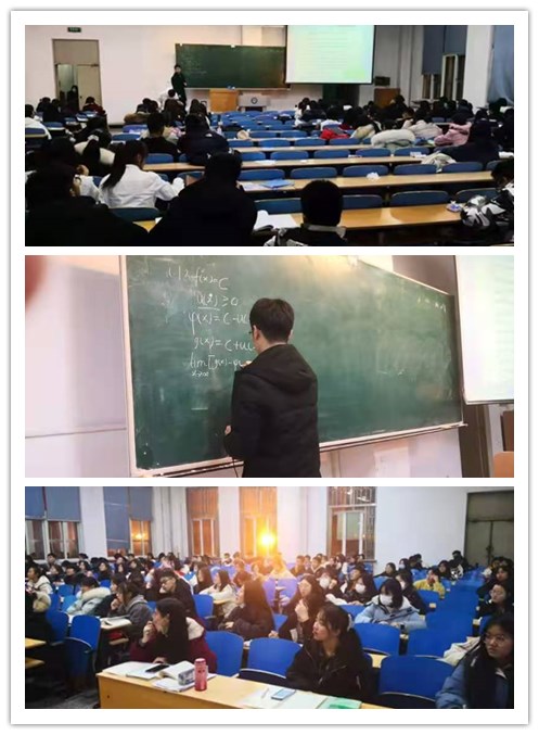 由于学院学科文理兼招的专业特点,高数学习一直是很多文科学生的短板,为了把短板补齐,学院集结高数考试满分的九名“学霸”,每周利用两至三天晚自习时间,面向全体新生讲授高数知识点,讲解习题。学长学姐牺牲自身学习时间,集体备课,集体授课,将自己高数学习的方法和窍门倾囊相授,形成了“台上讲的认真,台下学的认真”的良好学习氛围。新生们非常珍惜来之不易的补习机会,纷纷表示会充分利用好晚自习时间,在期末的高数考试中取得好成绩。浓厚的学习气氛还吸引来了高年级备考研究生的同学到自习室旁听,学习气氛热烈。