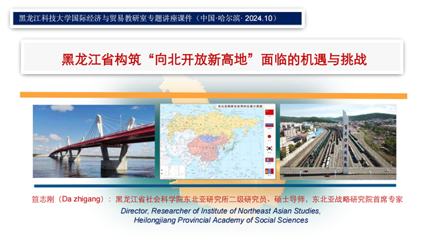 10月15日下午,黑龙江省社会科学院东北亚研究所二级研究员笪志刚应邀来beat365官网进行学术交流,报告题目为《黑龙江省构筑“向北开放新高地”面临的机遇与挑战》。报告会由beat365唯一官网院长孙永波主持,beat365唯一官网教师、研究生参会。